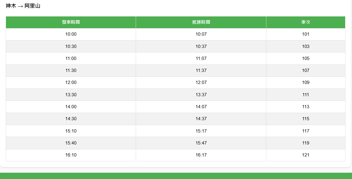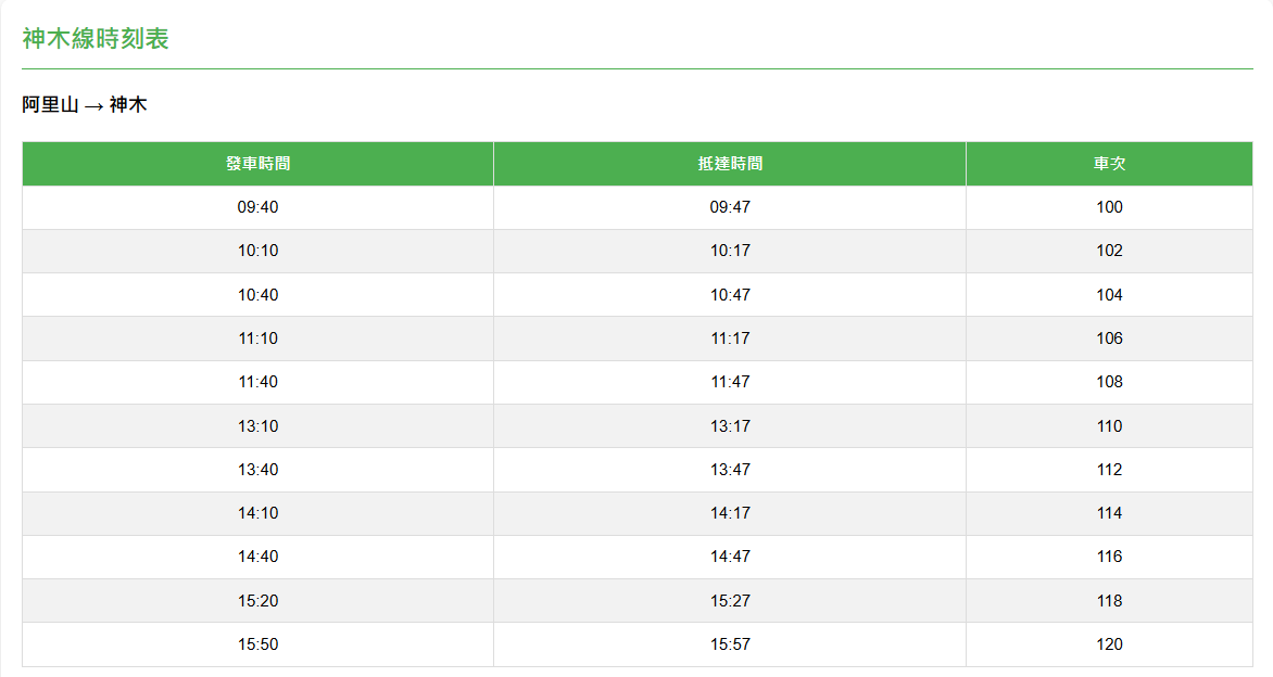 行駛區間:阿里山站 ↔ 神木站