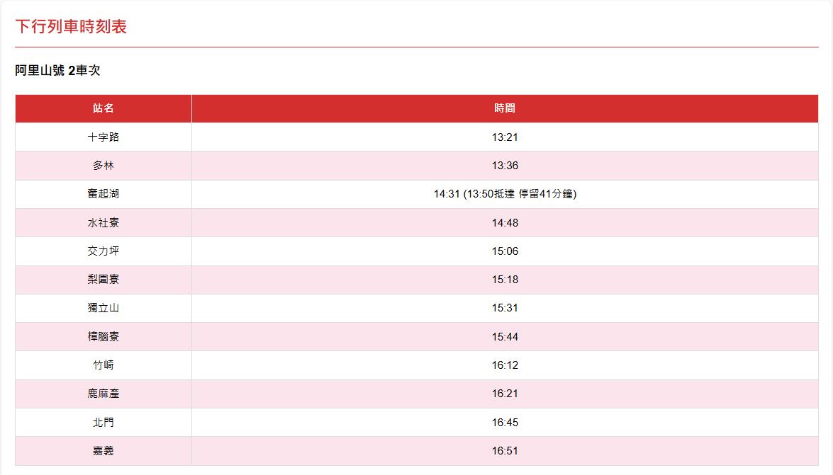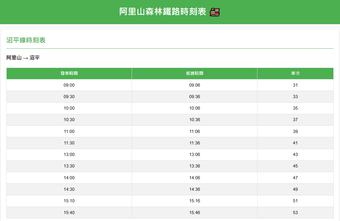 🚂 阿里山森林鐵路本線資訊