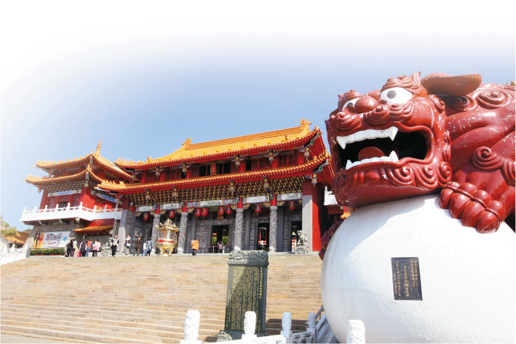 文武廟是日月潭著名的地標之一,其莊嚴雄偉的北朝式建築風格宛如宮殿般氣勢磅礡。此外,文武廟的觀景台更是欣賞日月潭美景的絕佳位置。從高處俯瞰,可將日月潭的湖光山色與文武廟古典建築之美盡收眼底,尤其是夕陽時分,更是令人震撼的賞景之地。廟埕廣場上的兩座朱紅色石獅,高達六公尺,氣勢非凡,成為遊客拍照留念的熱門景點。而牌樓正對日月潭的設計,更展現出宏偉壯麗的視覺效果。