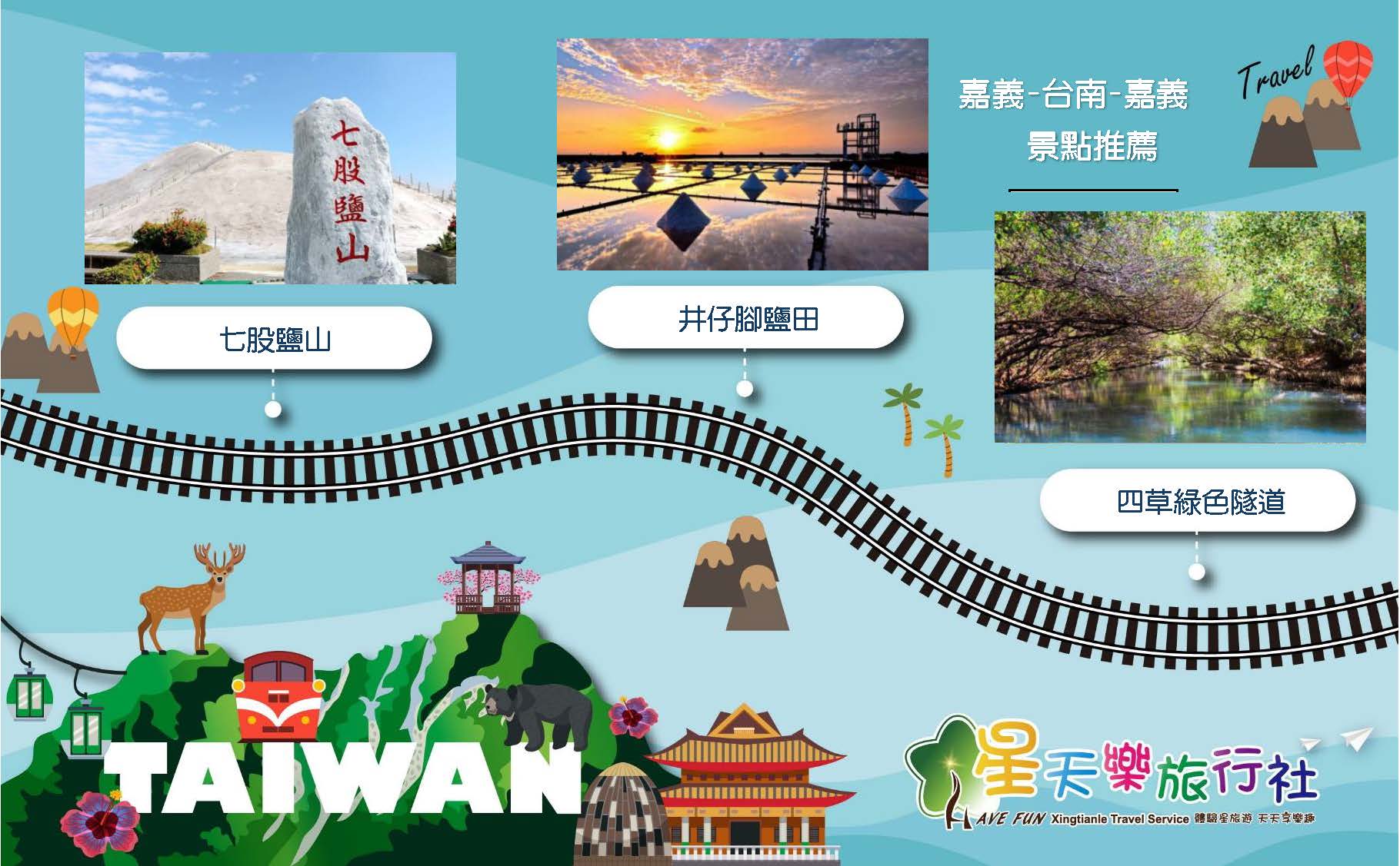 嘉義(出發)→七股鹽山→井仔腳鹽田→四草綠色隧道→嘉義(回程)