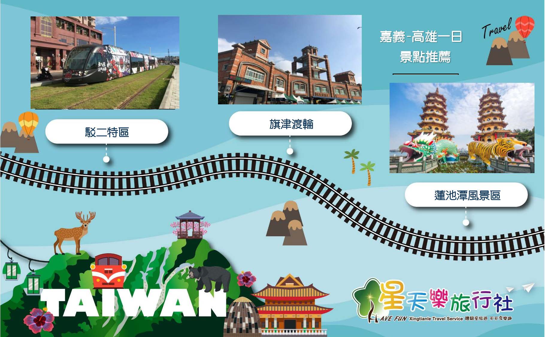 嘉義(出發)→旗津渡輪→駁二特區→蓮池潭風景區→高雄(回程)