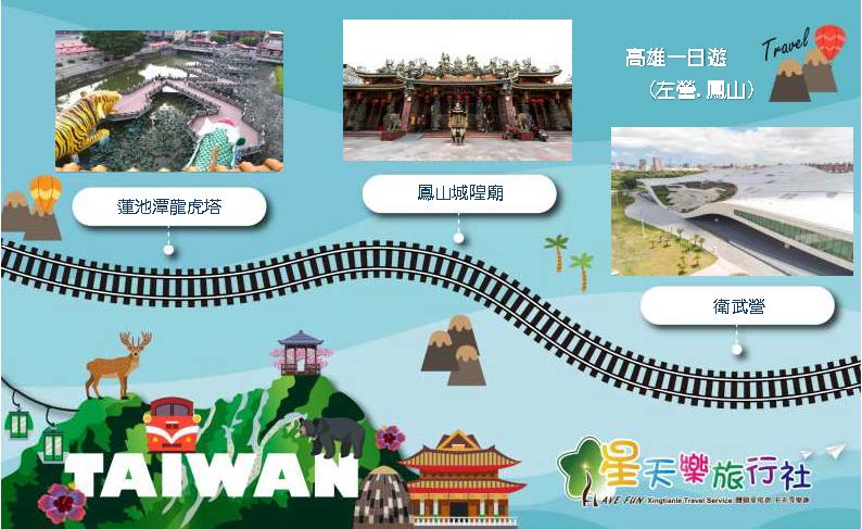 高雄(出發)→蓮池潭龍虎塔→再見捌捌陸→鳳山城隍廟→衛武營→高雄或台南(回程)