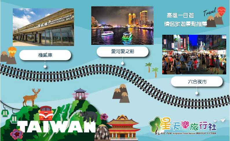 高雄(出發)→駁二藝術特區→棧貳庫→六合夜市→愛河愛之船→高雄或台南(回程)